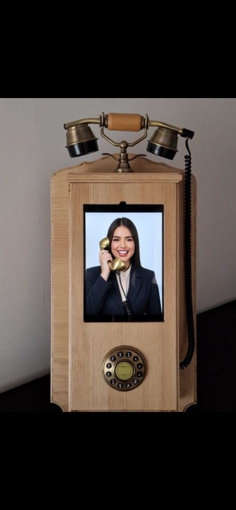 Es un sistema Vintage de video teléfono para tu boda, una alternativa única a los convencionales libros de firmas que sustituye papel y boli por mensajes de video muy divertidos.